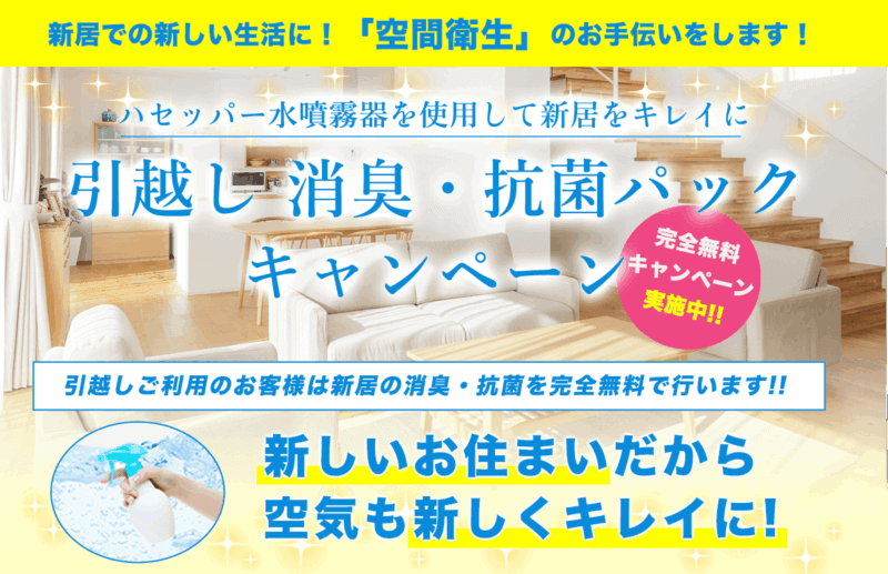 キタザワ引越センターでは、消臭・抗菌サービスを無料で行ってくれます。