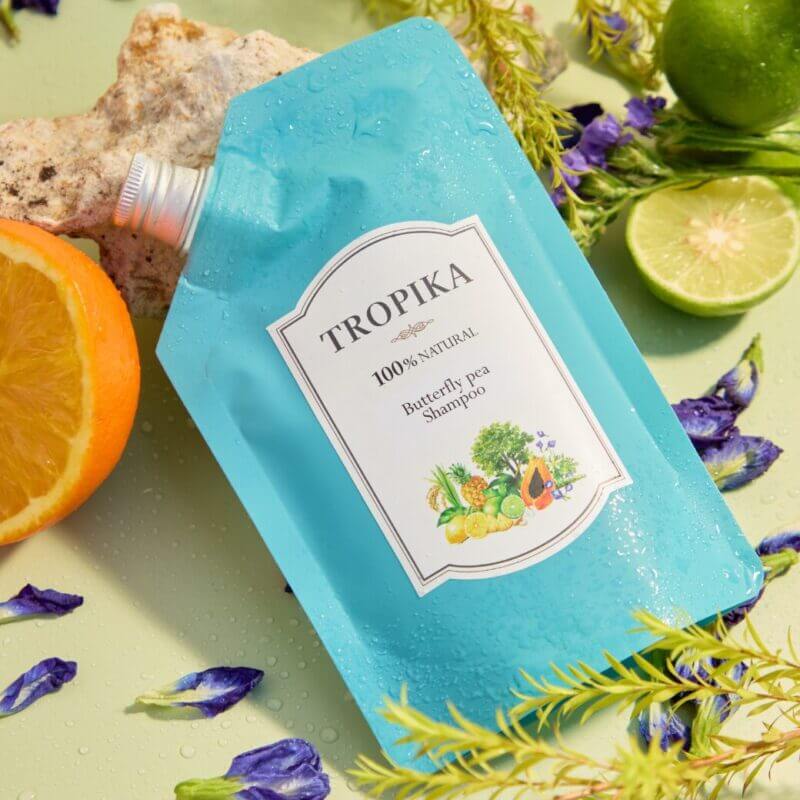 TROPIKA(トロピカ)は100%天然由来、人工添加物ゼロでありながら、まるで南国のスパにいるような華やかな香りのシャンプー。